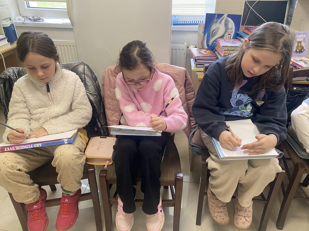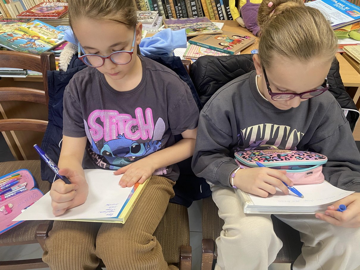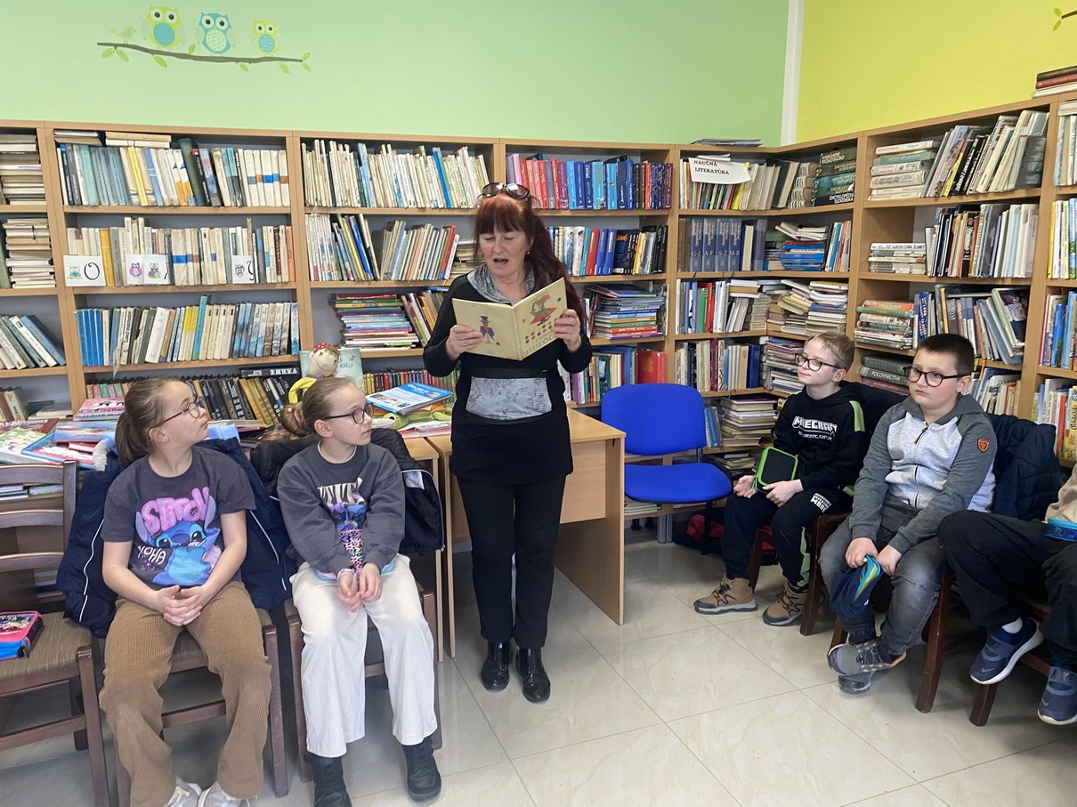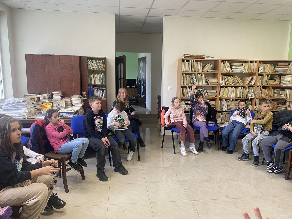 Ako prví navštívili knižnicu žiaci 5. ročníka. V úvode sme mali rozcvičku a to zo slabík, kde žiaci mali za úlohu vytvoriť čo najviac slov. Nasledovalo zážitkové čítanie z knihy od Kláry Jarunkovej O psovi, ktorý mal chlapca. Kniha bola doplnená bohatými ilustráciami. Nasledovala krátka ukážka z knihy: „Som dospelý pes a jedlo si zoženiem aj sám. Prenocujem hocikde, aj pod holým nebom. O to nejde. Lenže starať sa nemám o koho!“ Takto si vravel psík, ktorý bol presvedčený, že ku každému psovi patrí aspoň jeden človek. A tak si jedného pre seba aj vyhliadol. Rozhodnutie psíka, že si nájde svojho človeka, je celkom dobrý dôvod na príbeh. Aj to, že si vyberie malého chlapca. Tento príbeh deti dotvorili ilustráciami.