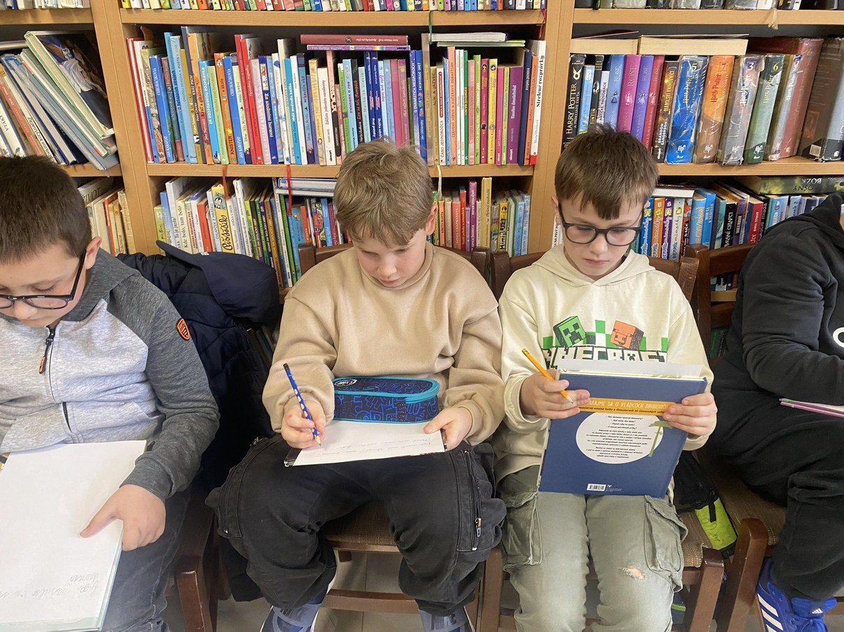 Pre šiestakov, siedmakov a ôsmakov to boli zábavné tvorenia básní- básničkovanie a literárne hádanky. Pracovali sme s knihami: Otázky pre špekulantov 1. a 2. časť, a kniha 250otázok a odpovedí pravda, či omyl? Táto kniha obsahuje 250 zaujímavých, často až neuveriteľných tvrdení. V knihe nájdeme i správne odpovede spolu s podrobnými vysvetleniami, takže si svoje riešenia môžeme aj skontrolovať a zároveň sa i mnohému naučiť. Prečítali sme si aj ukážku z knihy Zápisník jedného chlapca, ktorú napísal Dávid Dziak. Kniha rozpráva príbeh o chlapcovi, ktorý nadovšetko mal rád chvíle, keď bol doma s mamou a ocinom a keď sa mohli spolu podeliť o svoje radosti aj starosti. Hoci nebol ešte dospelý, dobre si uvedomoval , že život vie byť občas ťažký a prináša so sebou aj smútok, bolesť či odlúčenie. Aby si dokázal s ťažkosťami poradiť, píše si svoje zážitky a skúsenosti do zápisníka. A aby v tom nebol sám, s písaním mu pomáha básnik Dávid a s kreslením ilustrátorka Katka. Ak ste zvedaví, čo všetko môže postretnúť jedného chlapca, začítajte sa do tejto knihy a nájdite si v nej svoj príbeh, svojho hrdinu a to, ako aj malí chlapci bojujú o dobro na svete.
