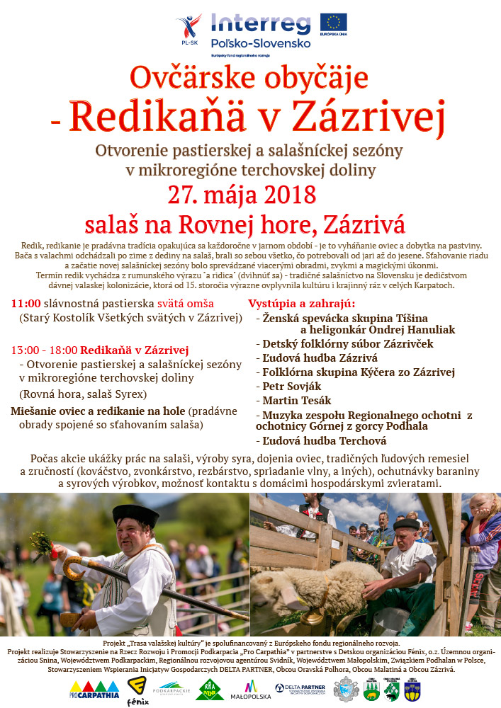 Obec Zázrivá organizuje dňa 27.5.2018 podujatie zamerané na podporu pastierstva, ovčiarstva a salašníctva a na zachovávanie tradícií spojených s dedičstvom valaskej kolonizácie a kultúry.