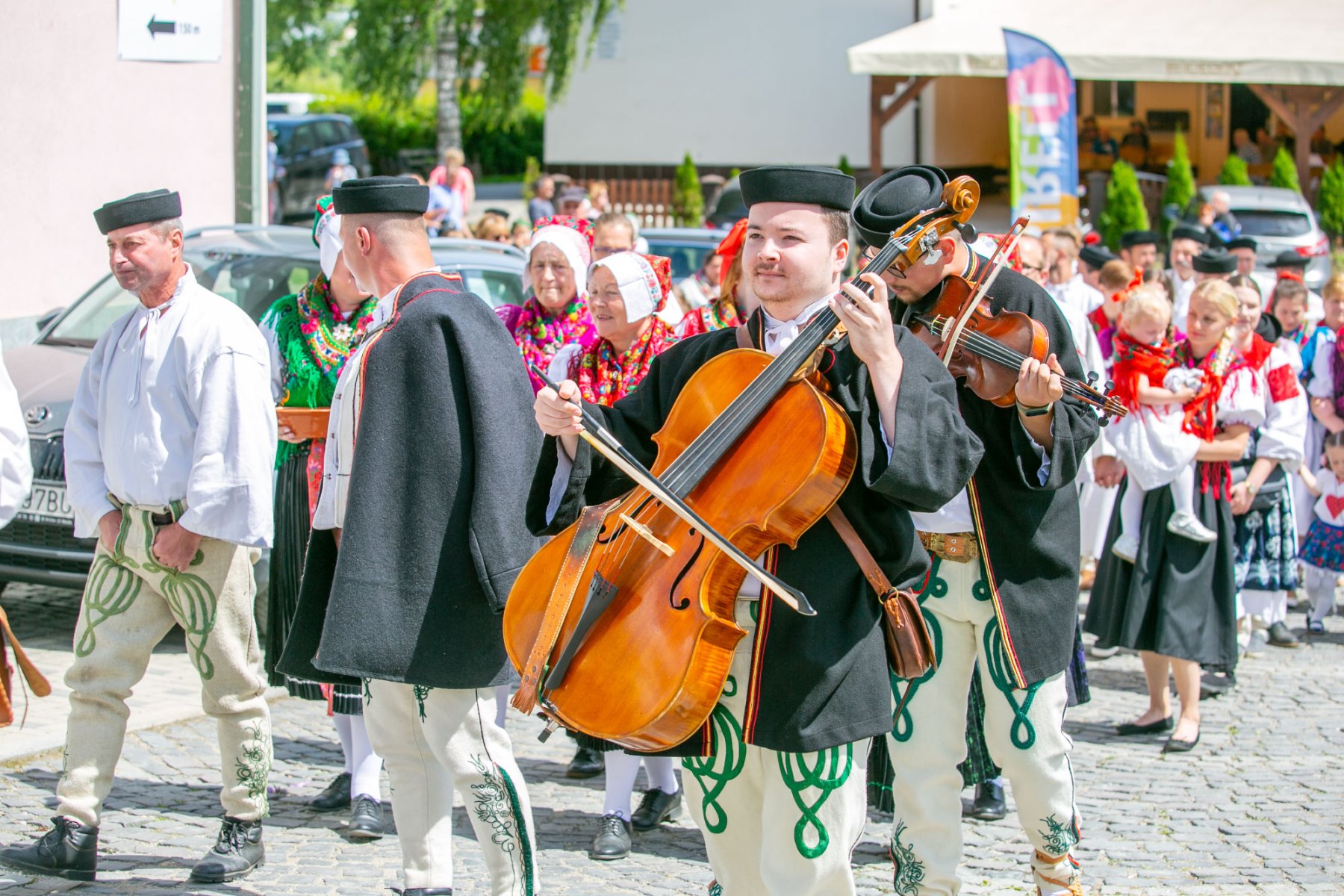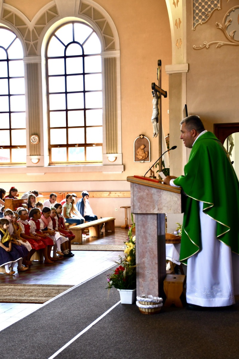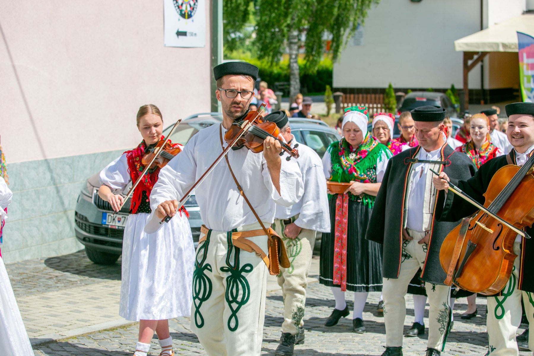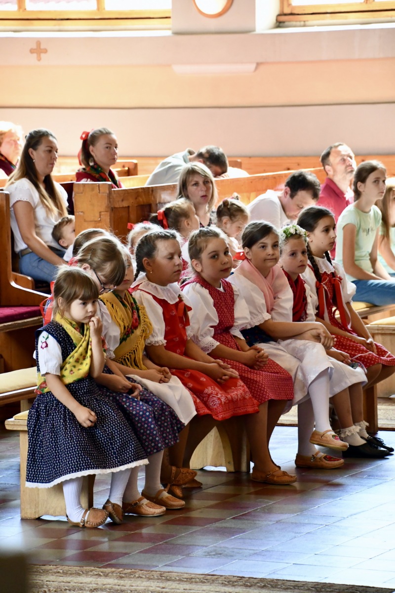 Začiatok nedeľného programu patril slávnostnej svätej omši v kostole, ktorú celebroval duchovný otec Mgr. Martin Jurči. Po sv. omši sme išli všetci krojovaní spoločne v sprievode k tribúne, kde sme si urobili spoločnú fotografiu. Následne po fotení nasledoval slávnostný príhovor pána starostu JUDr. Matúša Mnícha. Po ukončení slávnostného príhovoru sa ozýval nádherný spev našich detí z DFS Zázrivček a ĽH Zázrivá. Počas ich vystúpenia prebiehalo sčítanie krojovaných, ktorí sa zapisovali do kroniky. Každý si odniesol pozornosť od našich korbačikárov, za čo im veľmi pekne ďakujeme. Tohto roku sa nás zapísalo 180. Dúfame, že o rok nás bude opäť viac a aj ostatní vytiahnu svoje nádherné kroje a pôjdu spolu s nami. Ďalej sa nám v programe predstavili heligonkári bratia Macekovci. Po nich sme privítali našu Fsk Kýčera, DFS Zázrivček a Ľudovú hudbu Zázrivá. Počas slávnostných dní v Zázrivej za kultúrnym domom okrem našich folkloristov to boli potom vystúpenia Fsk Čečina z Veličnej a FS Pláteník zo Zubrohlavy. Ako posledná vystupovala Fsk Podšíp zo Stankovian. Záver tohtoročných Zázrivských dní patril slovenskému spevákovi Pavlovi Drapákovi, ktorého vystúpenie zaujalo všetkých.